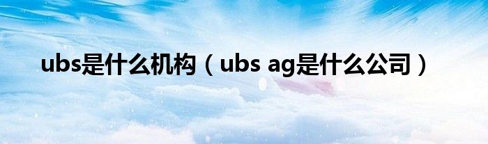 ubs是什么机构(ubsag是什么公司)
