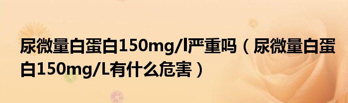 大家好,乐天来为大家解答以下的问题,尿微量白蛋白150mg/l严重吗,尿微量白蛋白150mg/L有什么危害很多人还不知道,现在让我们一起来看看吧!