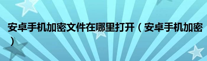 大家好,来宝来为大家解答以下问题,安卓手机加密文件在哪里打开,安卓手机加密很多人还不知道,今天让我们一起来看看吧!
