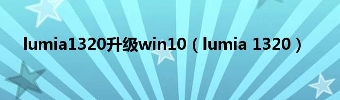 大家好,来宝来为大家解答以下问题,lumia1320升级win10,lumia 1320很多人还不知道,今天让我们一起来看看吧!