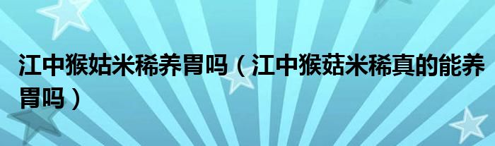 江中猴姑米稀养胃吗(江中猴菇米稀真的能养胃吗)