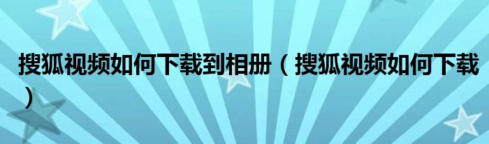 大家好,来宝来为大家解答以下问题,搜狐视频如何下载到相册,搜狐视频如何下载很多人还不知道,今天让我们一起来看看吧!