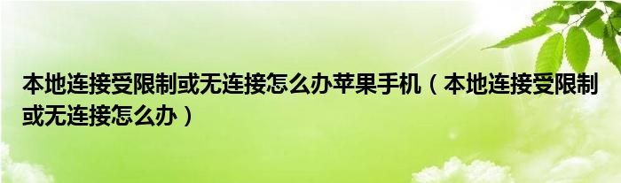 大家好,来宝来为大家解答以下问题,本地连接受限制或无连接怎么办苹果手机,本地连接受限制或无连接怎么办很多人还不知道,今天让我们一起来看看吧!