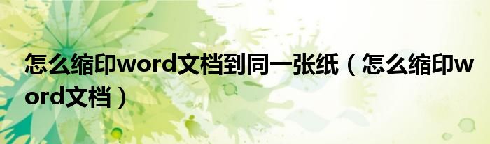 怎么缩印word文档到同一张纸(怎么缩印word文档)