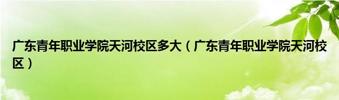 关于广东青年职业学院天河校区多大,广东青年职业学院天河校区这个很多人还不知道,今天菲菲来为大家解答以上的问题,现在让我们一起来看看吧!