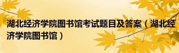 关于湖北经济学院图书馆考试题目及答案,湖北经济学院图书馆这个很多人还不知道,今天菲菲来为大家解答以上的问题,现在让我们一起来看看吧!