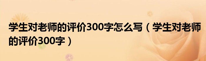 关于学生对老师的评价300字怎么写,学生对老师的评价300字这个很多人还不知道,今天菲菲来为大家解答以上的问题,现在让我们一起来看看吧!