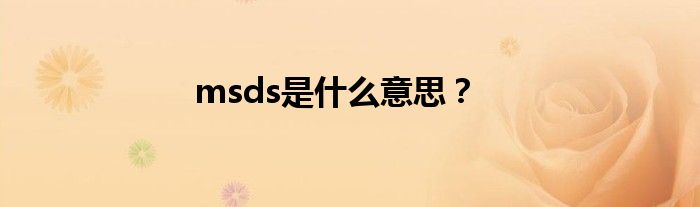 msds是什么意思?