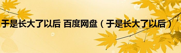 关于于是长大了以后 百度网盘,于是长大了以后这个很多人还不知道,今天菲菲来为大家解答以上的问题,现在让我们一起来看看吧!
