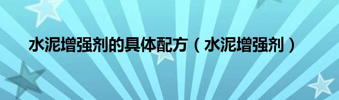 关于水泥增强剂的具体配方,水泥增强剂这个很多人还不知道,今天菲菲来为大家解答以上的问题,现在让我们一起来看看吧!