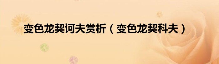 变色龙契诃夫赏析(变色龙契科夫)