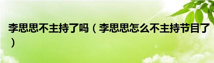 李思思不主持了吗(李思思怎么不主持节目了)