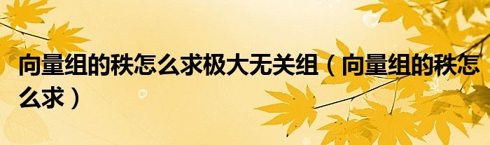 大家好,小晋来为大家解答以下问题,关于向量组的秩怎么求极大无关组,向量组的秩怎么求很多人还不知道,今天让我们一起来看看吧!