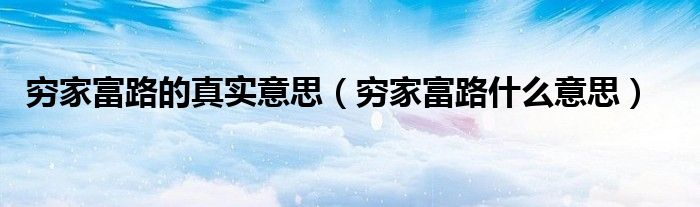 关于穷家富路的真实意思,穷家富路什么意思这个很多人还不知道,今天菲菲来为大家解答以上的问题,现在让我们一起来看看吧!