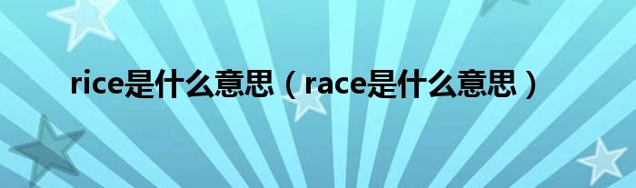 大家好,小晋来为大家解答以下问题,关于rice是什么意思,race是什么意思很多人还不知道,今天让我们一起来看看吧!