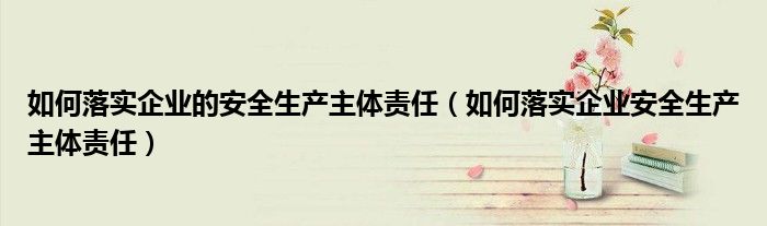 关于如何落实企业的安全生产主体责任,如何落实企业安全生产主体责任这个很多人还不知道,今天菲菲来为大家解答以上的问题,现在让我们一起来看看吧!