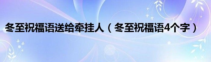 大家好,小飞来为大家解答以上问题,冬至祝福语送给牵挂人,冬至祝福语4个字很多人还不知道,现在让我们一起来看看吧!