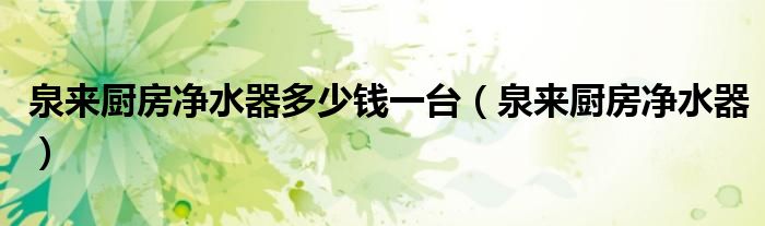 大家好,小飞来为大家解答以上问题,泉来厨房净水器多少钱一台,泉来厨房净水器很多人还不知道,现在让我们一起来看看吧!