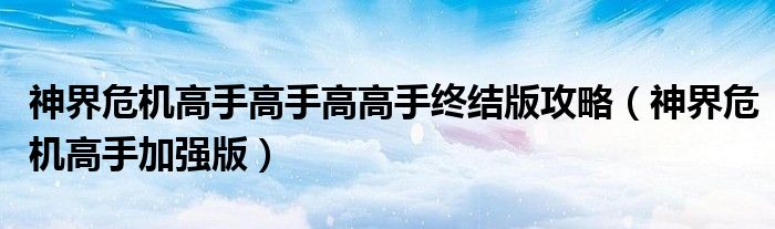神界危机高手高手高高手终结版攻略(神界危机高手加强版)