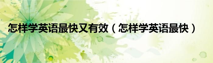 关于怎样学英语最快又有效,怎样学英语最快这个很多人还不知道,今天菲菲来为大家解答以上的问题,现在让我们一起来看看吧!