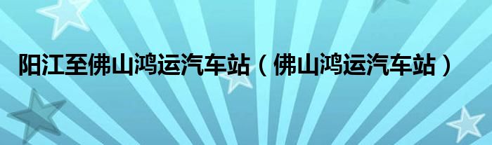 阳江至佛山鸿运汽车站(佛山鸿运汽车站)