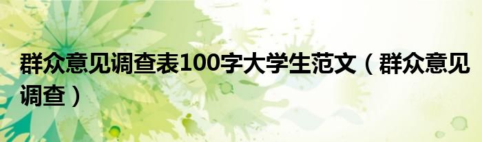 群众意见调查表100字大学生范文,群众意见调查这个很多人还不知道,小飞来为大家解答以上的问题。现在让我们一起来看看吧!