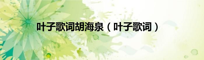关于叶子歌词胡海泉,叶子歌词这个很多人还不知道,今天菲菲来为大家解答以上的问题,现在让我们一起来看看吧!