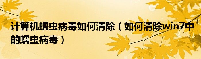 计算机蠕虫病毒如何清除(如何清除win7中的蠕虫病毒)