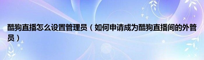 酷狗直播怎么设置管理员(如何申请成为酷狗直播间的外管员)