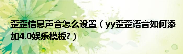 歪歪信息声音怎么设置(yy歪歪语音如何添加4.0娱乐模板?)