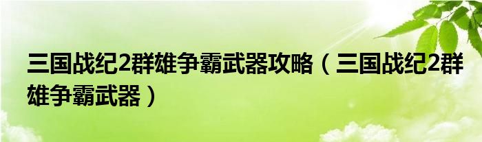 大家好,慧慧来为大家解答以上问题,三国战纪2群雄争霸武器攻略,三国战纪2群雄争霸武器很多人还不知道,现在让我们一起来看看吧!