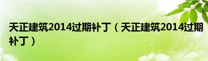 天正建筑2014过期补丁(天正建筑2014过期补丁)