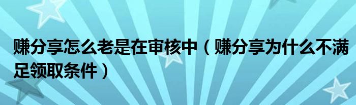 大家好,跳跳为你解答以上问题。赚分享怎么老是在审核中,赚分享为什么不满足领取条件这个问题很多人还不知道,现在让我们一起来看看吧!