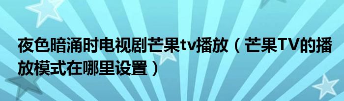 大家好,跳跳为你解答以上问题。夜色暗涌时电视剧芒果tv播放,芒果TV的播放模式在哪里设置这个问题很多人还不知道,现在让我们一起来看看吧!