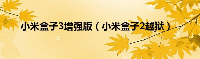大家好,慧慧来为大家解答以上问题,小米盒子3增强版,小米盒子2越狱很多人还不知道,现在让我们一起来看看吧!