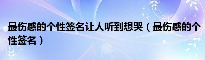 大家好,慧慧来为大家解答以上问题,最伤感的个性签名让人听到想哭,最伤感的个性签名很多人还不知道,现在让我们一起来看看吧!