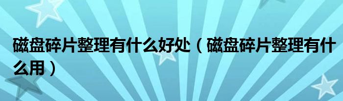 以上是磁盘碎片整理有什么用,电脑的相关介绍,希望对大家有所帮助!