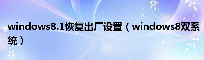 大家好,慧慧来为大家解答以上问题,windows8.1恢复出厂设置,windows8双系统很多人还不知道,现在让我们一起来看看吧!