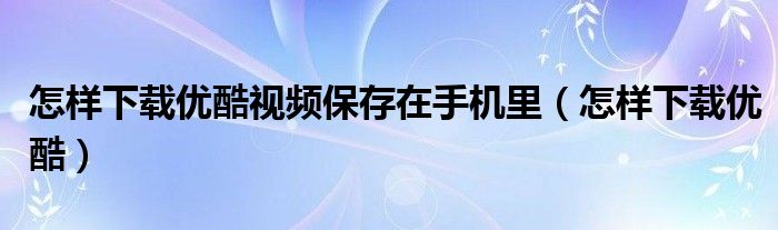 大家好,跳跳为你解答以上问题。怎样下载优酷视频保存在手机里,怎样下载优酷这个问题很多人还不知道,现在让我们一起来看看吧!