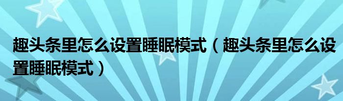 大家好,跳跳为你解答以上问题。趣头条里怎么设置睡眠模式,趣头条里怎么设置睡眠模式这个问题很多人还不知道,现在让我们一起来看看吧!