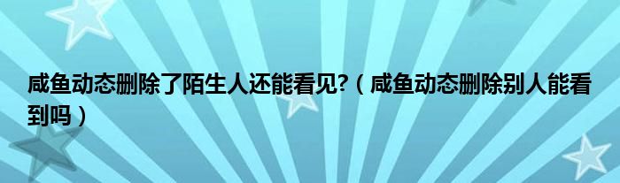 大家好,跳跳为你解答以上问题。咸鱼动态删除了陌生人还能看见?,咸鱼动态删除别人能看到吗这个问题很多人还不知道,现在让我们一起来看看吧!