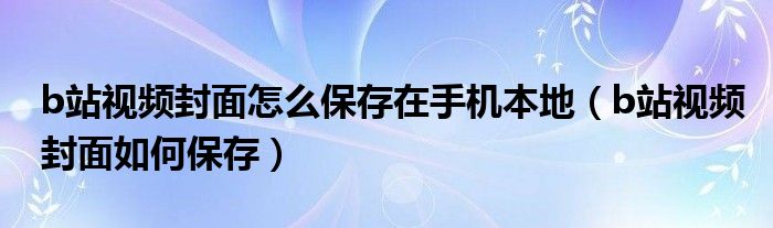 b站视频封面怎么保存在手机本地(b站视频封面如何保存)