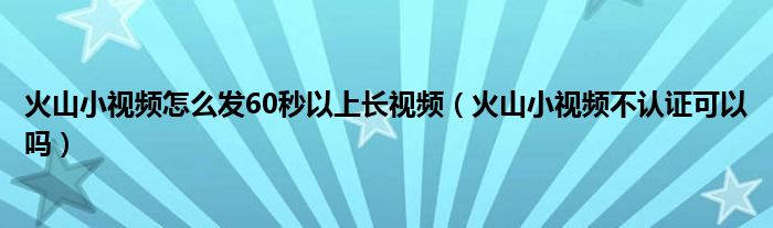 火山小视频怎么发60秒以上长视频(火山小视频不认证可以吗)