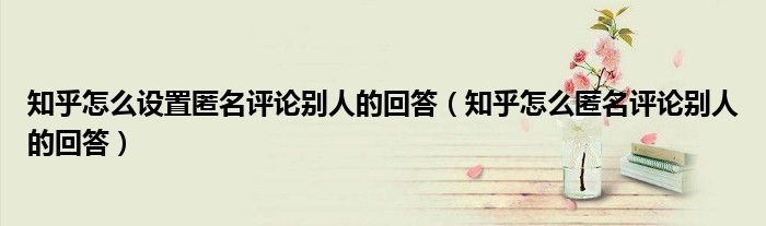 知乎怎么设置匿名评论别人的回答(知乎怎么匿名评论别人的回答)