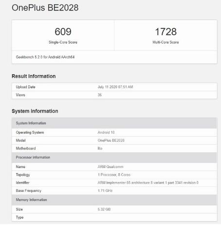 已经确认OnePlus Nord将配备Snapdragon 765G处理器。因此,这款神秘的OnePlus BE2028将略低于将于7月21日推出的型号。