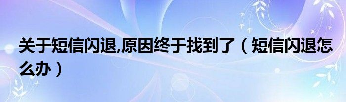 大家好,小晋来为大家解答以下问题,关于关于短信闪退,原因终于找到了,短信闪退怎么办很多人还不知道,今天让我们一起来看看吧!