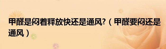 大家好,小晋来为大家解答以下问题,关于甲醛是闷着释放快还是通风?,甲醛要闷还是通风很多人还不知道,今天让我们一起来看看吧!