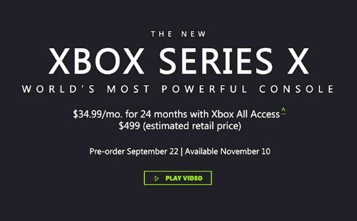 微软Xbox Series X售价499美元 11月10日上市