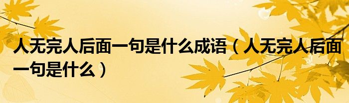 大家好,小晋来为大家解答以下问题,关于人无完人后面一句是什么成语,人无完人后面一句是什么很多人还不知道,今天让我们一起来看看吧!