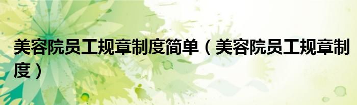 关于美容院员工规章制度简单,美容院员工规章制度这个很多人还不知道,今天菲菲来为大家解答以上的问题,现在让我们一起来看看吧!